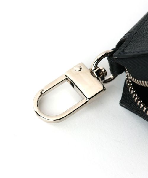 【デザイン】 L'arcobaleno(ラルコバレーノ)のキーケース。スマートキーやカードキー、通常タイプのカギなど、様々なタイプのカギを一ヶ所にまとめることが可能なキーケースです。内側に落下防止のチェーンを付属しているため、安心してスマートキーを収納出来ます。外側と内側に1室ずつカードポケットがあるので会社のセキュリティカードや駐車券なども収納することができます。スナップ式のキーリングには、自転車などの取り外して使う頻度が多い鍵を取り付けるのに便利です。下部には鍵を差し込み収納出来るよう、ポケットを配置しています。