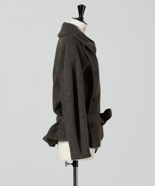 【素材】表地にはウールとアルパカの混紡素材を使用し、温かみのある柔らかな手触りと軽やかな着心地を実現。毛羽立ち感と自然な光沢が上品さを引き立てます。裏地は身頃がコットン100%、袖部分はコットンとレーヨンの混紡で、滑らかで肌触りの良い仕上がり。しっかりとした生地感ながら、軽やかで柔軟性があり、重ね着もスムーズに行えます。温かさと動きやすさを兼ね備えた素材選びは、日常から特別なシーンまで幅広く活躍します。