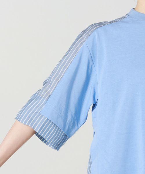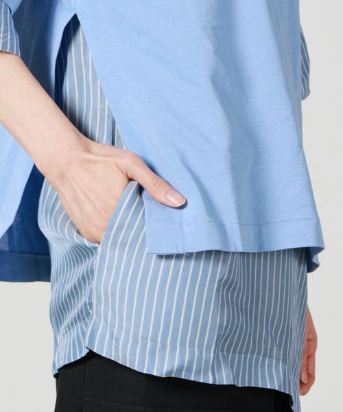 【デザイン】 TOGA PULLA(トーガ プルラ)のTシャツ。一見ベーシックでありながら、裾や肩に異素材を組み合わせることで個性を効かせたデザインがTOGA PULLAらしい魅力です。シルエットは程よくオーバーサイズで、身体のラインを拾いにくく、リラックス感のある着用感。ラフになりすぎないバランスで、デニムやワイドパンツはもちろん、スラックスやタイトスカートと合わせたきれいめな着こなしにも好相性です。ジャケットやシャツのインナーとしても使いやすく、シーズンを通して活躍する一着です。