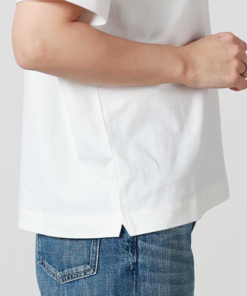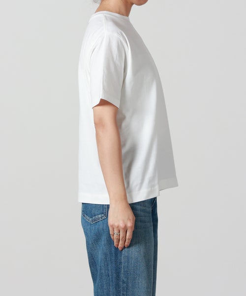 【デザイン】 AMERICANA(アメリカーナ)のTシャツ。 左胸にあしらったブランドロゴの刺繍が、シンプルな中にさりげない個性を添えます。背面には主張しすぎない絶妙なサイズ感のロゴが上品なアクセントに。程よくゆとりを持たせたシルエットは、抜け感のある着こなしを演出しつつ、体のラインを自然にカバー。1枚でさらりと着ても様になり、ジャケットやシャツのインナーとしてもバランスよく決まり、幅広いシーンで活躍してくれます。