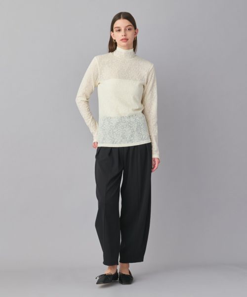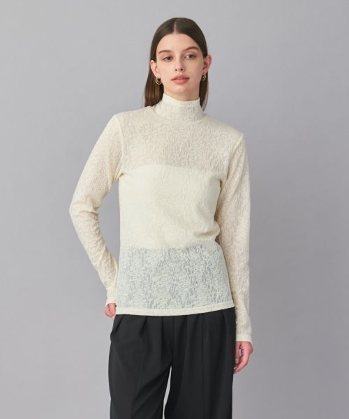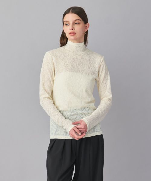 適度な厚みのあるジャカード素材を使用し、ストレッチ性に優れた快適な着心地を実現。透けすぎないので、冬の商品とコーディネートしてもバランスよく取り入れられます。軽やかさと上品さを兼ね備えたアイテムです。