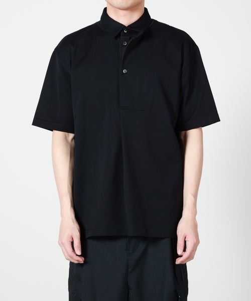 【デザイン】Tamme(タム)の半袖ポロシャツ。前立てが2重に重なったデザインが特徴的なポロシャツです。前立てのカーブは13度傾いており、タムのコンセプトでもある「既存の更新(12+1)」という要素がデザインに組み込まれています。オーバー過ぎない絶妙な緩さのシルエットなので、幅広いスタイルに取り入れやすいのもポイント。シャツとしての役割をしっかり果たしながらも、一枚でも存在感が出る一着に仕上がっております。