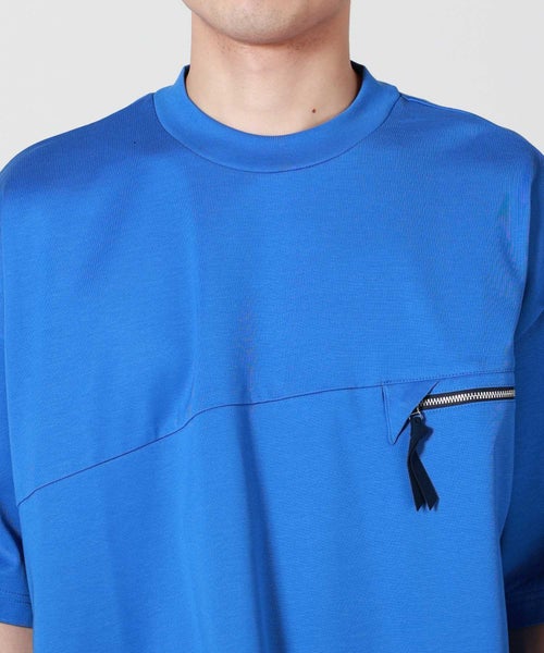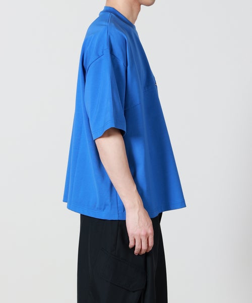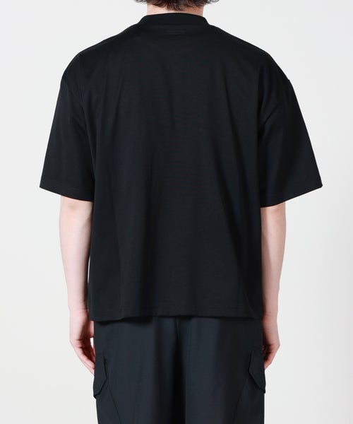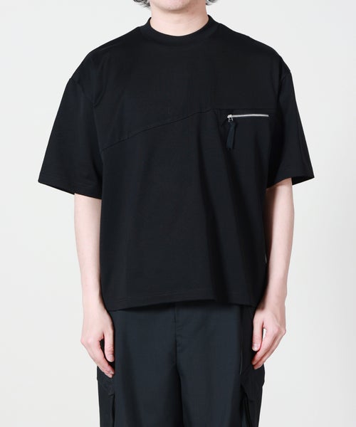 【デザイン】Tamme(タム)の半袖Tシャツ。胸元には13度傾いたシームが目を引き、タムのコンセプトでもある「既存の更新(12+1)」という要素がデザインに組み込まれています。左胸元にはポケットを配し、垂れたループなど、ブランドらしいデザインが随所に感じられます。身幅はゆったりしていますが、着丈はすっきりしているため、オーバーすぎない絶妙な緩さのシルエットで、幅広いスタイルに取り入れやすいのがポイント。汎用性はありながら、一枚でも存在感が出る一着に仕上がっています。