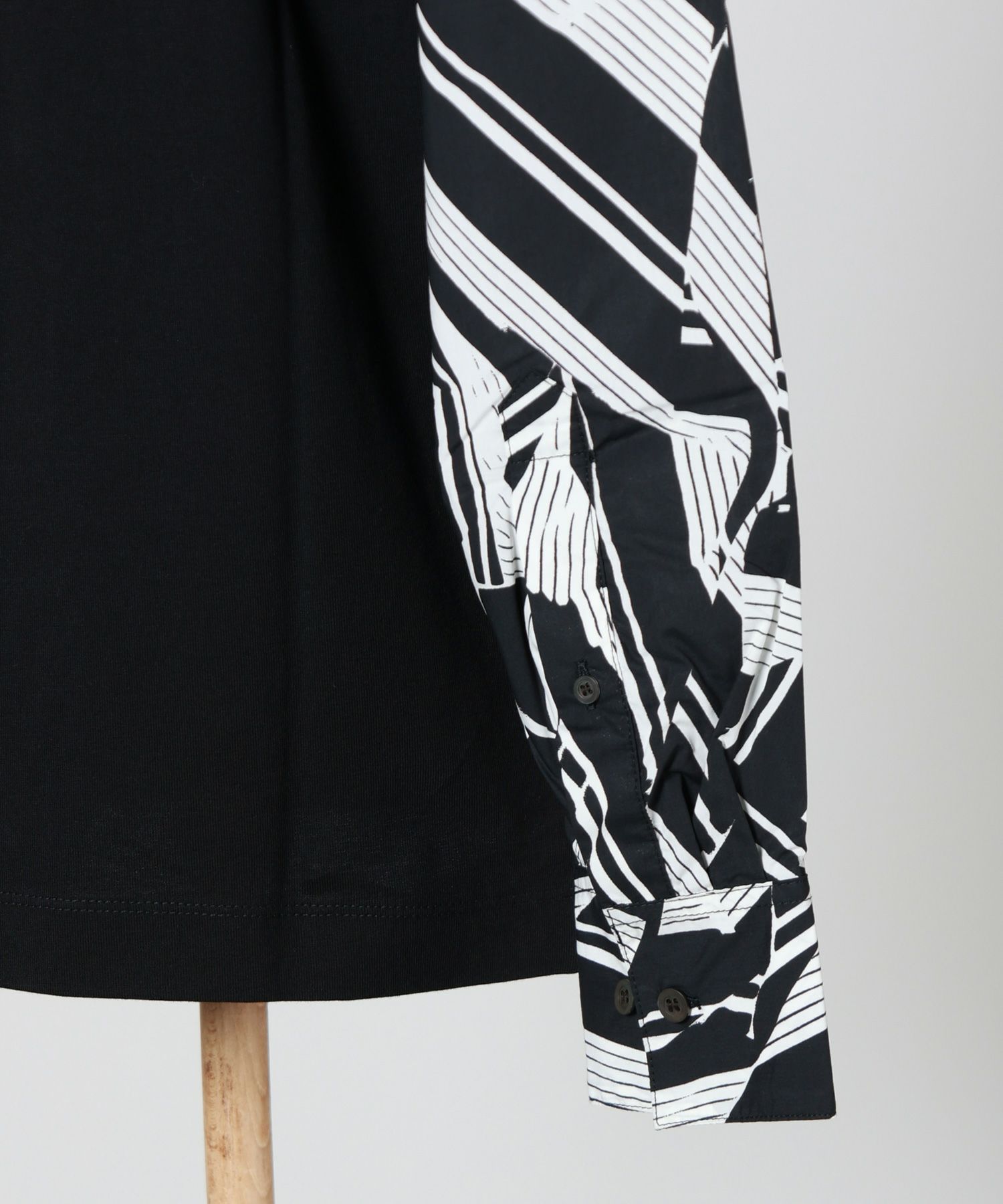 【デザイン】DRIES VAN NOTEN(ドリス ヴァン ノッテン)のカットソー。全体は緩めのシルエットでリラックス感がありながら、袖部分にブランドらしい個性を効かせた一枚です。身頃はシンプルに仕上げ、袖のみ異素材を使用し、繊細な柄とほのかなシアー感をプラス。動くたびに袖の表情が変わり、さりげなく存在感を放ちます。主張しすぎないデザインのため、1枚着としてはもちろん、ジャケットやベストのインナーとしても活躍。ボトムはデニムやスラックス、スカートまで幅広く合わせやすく、日常のスタイリングに自然に溶け込みます。