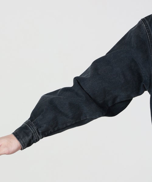 【素材】7番手のムラ糸を使用した12ozの後染めデニムを採用。硫化染料による表面染着で中白の風合いを持たせ、奥行きのあるムラ感が特徴です。さらに製品でストーンバイオ加工と柔軟仕上げを施すことで、ほどよく色落ちした上品なヴィンテージライクな表情に。適度な肉感で季節を問わず着用でき、着込むほどに風合いの変化も楽しめる素材です。