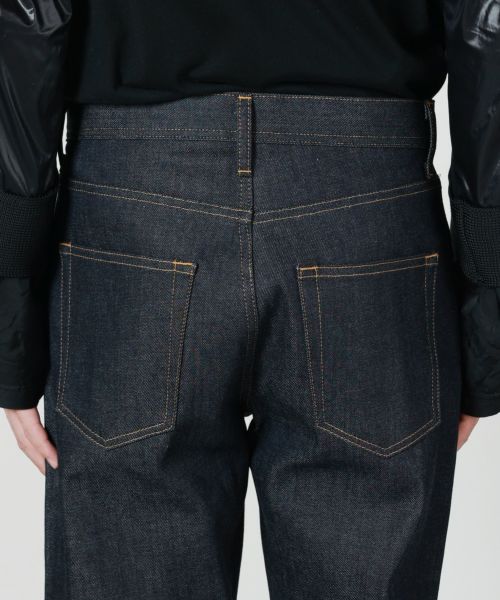 【デザイン】セルビッチデニムシリーズから新たに登場したセミワイドシルエットの1本。程よくゆとりを持たせたシルエットで、ヒップや腿まわりには自然なボリュームをもたせつつ、裾にかけてほんのりテーパードを効かせることで、ワイドすぎない大人のためのすっきりとしたバランスに仕上げています。カジュアルにもクリーンにも振れる汎用性の高いデザインで、合わせるトップス次第で幅広いスタイリングが可能。