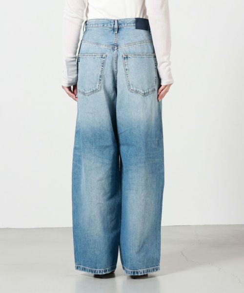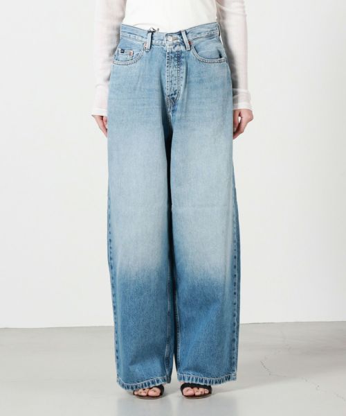 【デザイン】DENHAM(デンハム)のデニム。新たに登場した「KIKO」は、スーパーバギーフィットのデニムで、クラシックなリジッドデニムを使用し、ライトウォッシュ仕上げでヴィンテージ感のある風合いに仕上げられています。低めのウエスト、ワイドレッグ、長めの丈が特徴的で、リラックス感のあるシルエットが魅力です。デザインはトレンドを取り入れつつも定番のスタイルを大切にし、様々なコーディネートに合わせやすいアイテムです。ボタン留めの前開きがアクセントになり、カジュアルながらも洗練された印象を与えます。