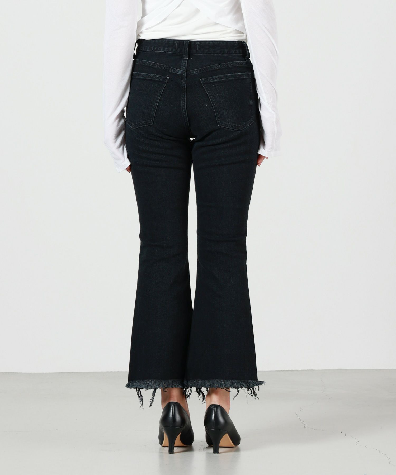【デザイン】RED CARD TOKYO(レッドカードトーキョー)のデニム。履きやすさと美脚を意識したクロップドのフレアデニム「Love」が登場。 膝の位置にこだわりフレア部分を長く見せることで、脚長効果が期待できるシルエットに。 カジュアル過ぎず、大人っぽくモードな印象のデザインです。 フラットシューズやサンダルはもちろん、ブーツにも相性抜群です。