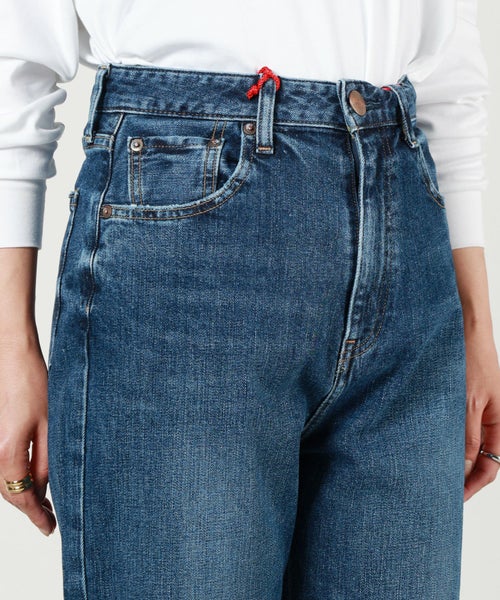 【素材】洗いこむほどにへたらないハリ、コシのあるふっくらした生地感を感じられる、かつてのRED CARD定番デニム・Anniversary20thに使用していた生地をもとにバージョンUPしたクラボウのストレッチブラックデニムを採用。仕上げにシルクのような光沢をもたせる「シルケット加工」が施されています。