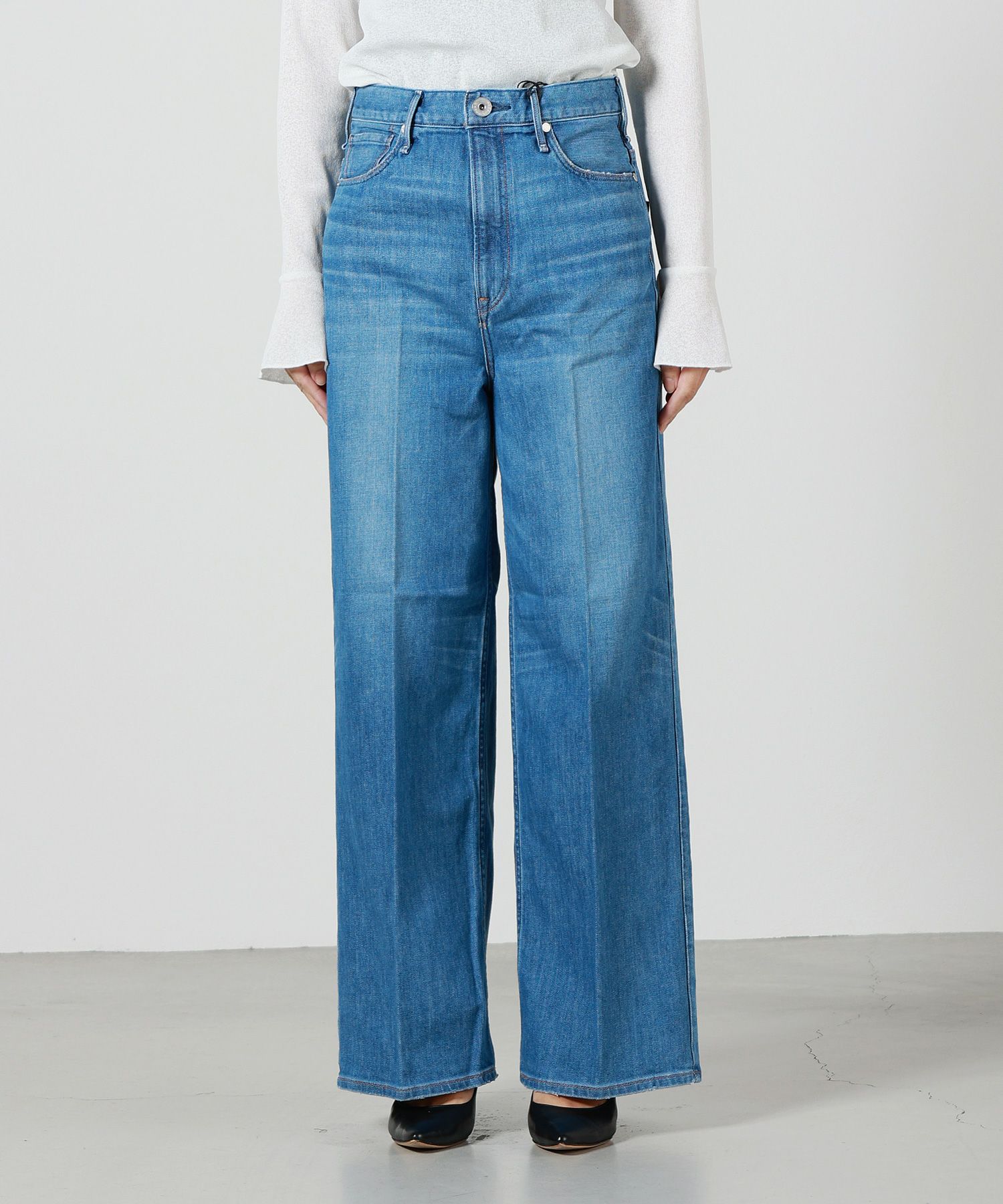 【デザイン】upper hights(アッパーハイツ)のデニムパンツ。「THE SISTER(ザ シスター)」は、トレンドのワイドシルエットを美しく表現した一着です。ウエスト周りはすっきりとしたハイライズデザインで、膝や裾部分に余裕を持たせた最もワイドなストレートシルエット。センタープレスが施されており、カジュアルさの中にもきれいめな印象を与えます。上品なUSED感が漂い、リラックス感を持ちながらもスタイリッシュに着こなせるデザインです。