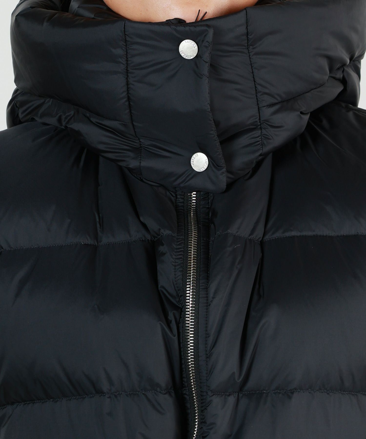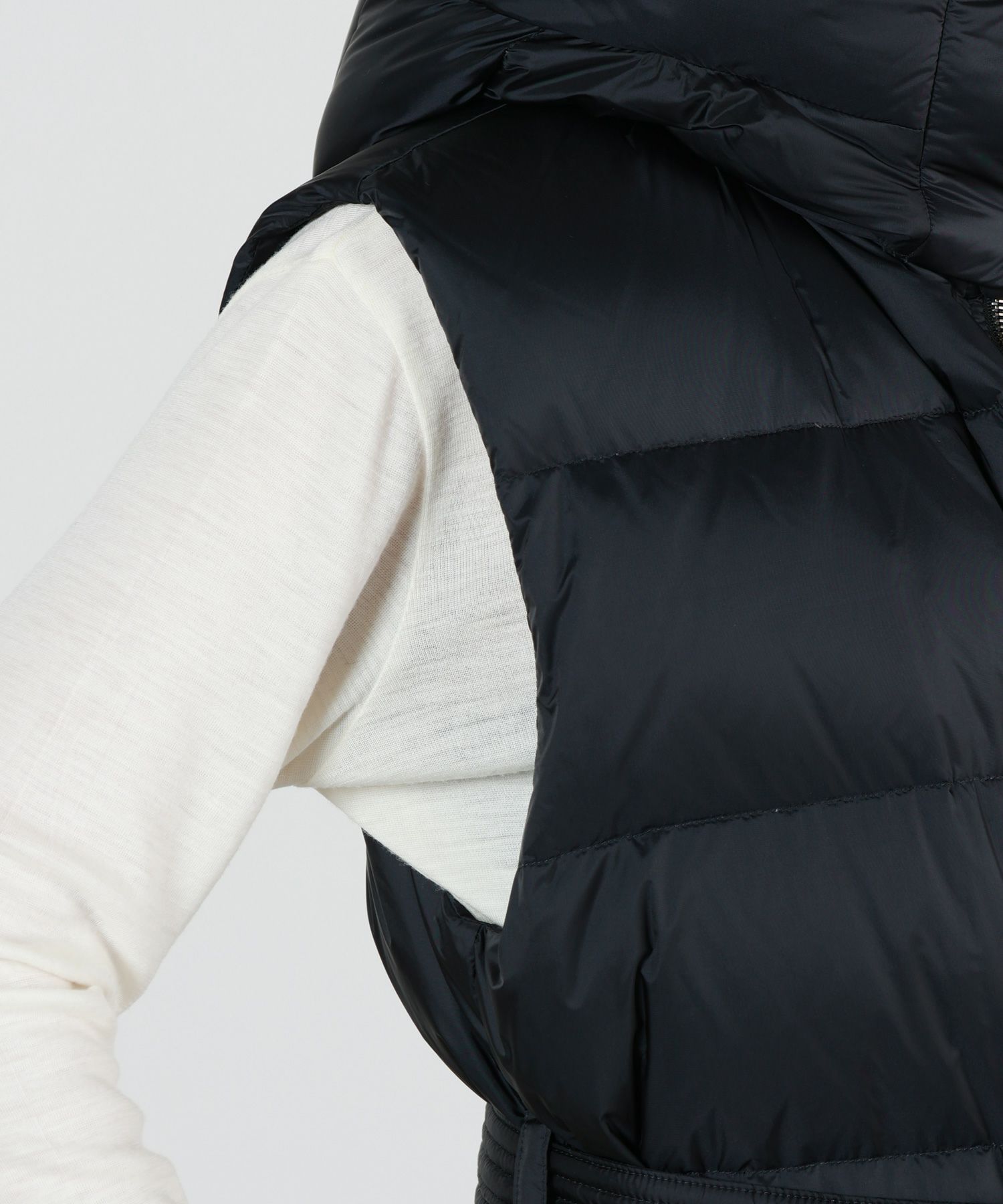 【デザイン】 TATRAS(タトラス)のダウン。 セミミドル丈のダウンベスト。 ボクシーなシルエットで、そのまま羽織ればざっくり大きめのダウンベストとして、ウエストベルトで絞れば美しいシェイプとボリューム感が魅力のアイテムとして、幅広いコーディネートが楽しめる一着です。 大きめのマチ付きフラップポケットがデザインのポイント。 ボリュームのあるフード口は、首回りを立体的に演出すると共に防寒性にも優れています。 フードは取り外し可能。