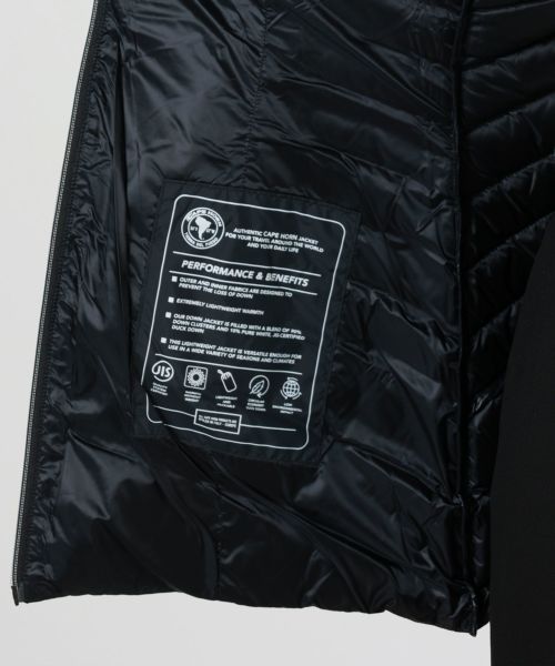 【デザイン】CAPE HORN(ケープホーン)のダウンベスト。 23年秋冬コレクションから新たに加わったミドル丈のデザインは、ショートとロングの魅力を兼ね備えた絶妙なバランスが特徴です。腰回りまでしっかりと暖かさを確保しながら、軽快な印象を演出。フードは取り外し可能で、カジュアルにもフォーマルにも合わせやすいスタイルに対応します。ポケット裏地にはスーパーマイクロファイバーを採用し、冷える季節に嬉しい仕様です。-10℃対応の高い保温性で、冬のアクティブなシーンにも最適な一着です。