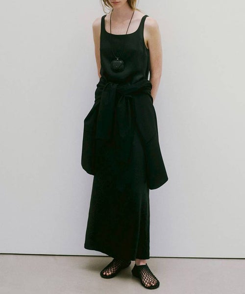 【デザイン】TODAYFUL(トゥデイフル)のノースリーブワンピース。上品な光沢を纏うサテン生地が、シンプルながらも洗練された印象を演出する一着。スクエアネックがデコルテをすっきりと見せ、女性らしい抜け感をプラスします。身体のラインを拾いすぎない絶妙なシルエットと、落ち感のある生地によって自然なスタイルアップを実現。ミニマルなデザインだからこそ、小物やレイヤード次第でデイリーからオケージョンまで幅広く対応可能です。