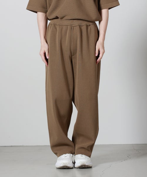【デザイン】CFCL(シーエフシーエル)のパンツ。ヒップからワタリにかけてゆとりを持たせ、裾に向かってゆるやかに美しく絞られるワイドテーパードシルエットが特徴です。立体的なフォルムによってすっきりとした印象をもたせることができ、リラックスとスポーティーな印象を両立させています。着脱のしやすいドローコード付きのゴムウエストを採用しています。