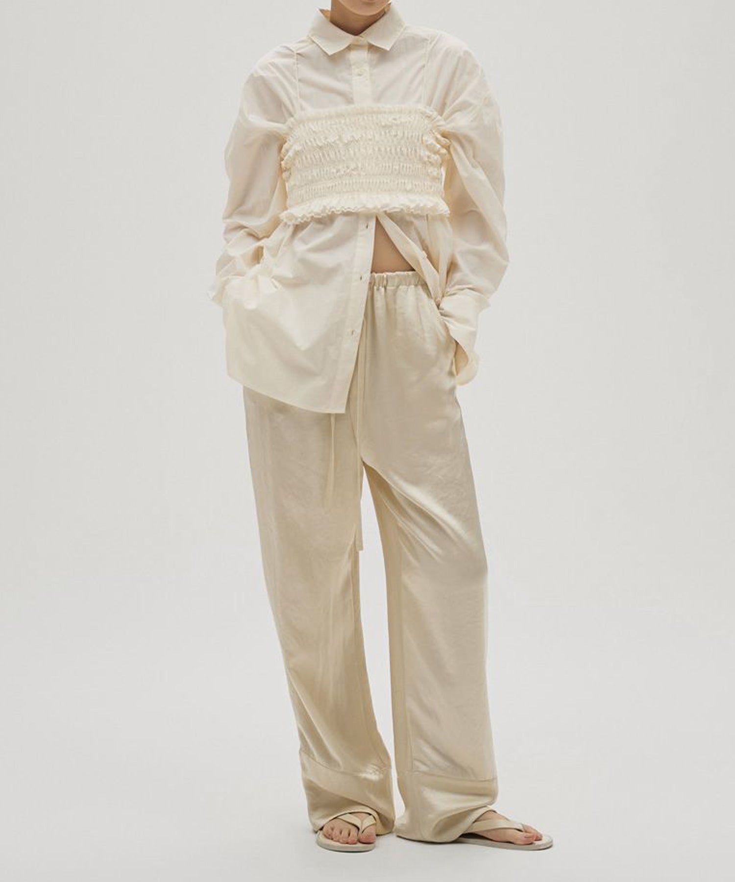 他の画像を見る NEW price_p 【TOTEME(トーテム)】 Fluid drawstring trousers TOTEME Fluid drawstring trousers ¥ 61,050 税込 お気に入りに登録する ■