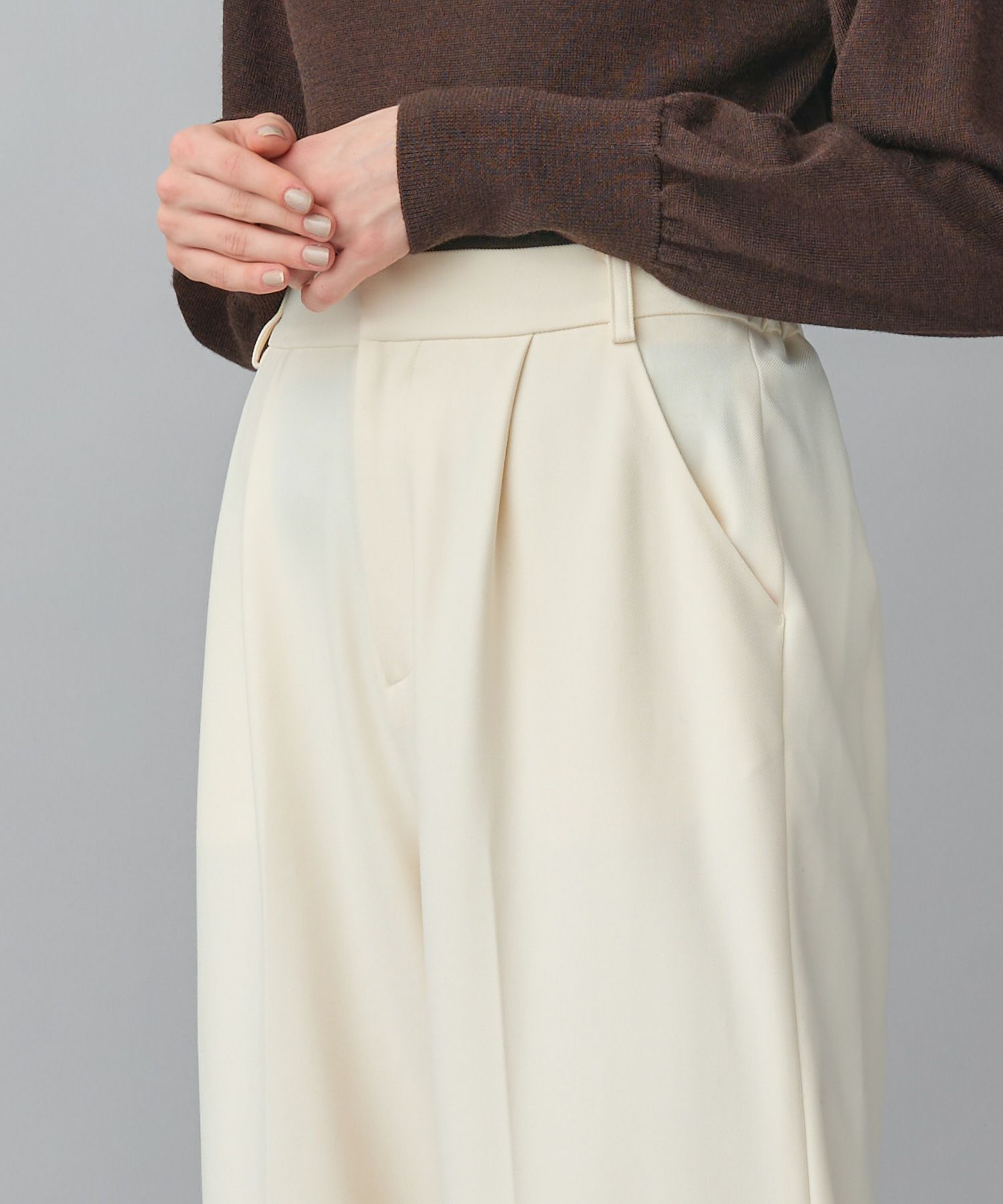 計算されたセミワイドシルエットは、オフィススタイルでもカジュアルスタイルでも美しく映えます。シンプルなデザインでトップスを選ばず、着回し力抜群の一本です。