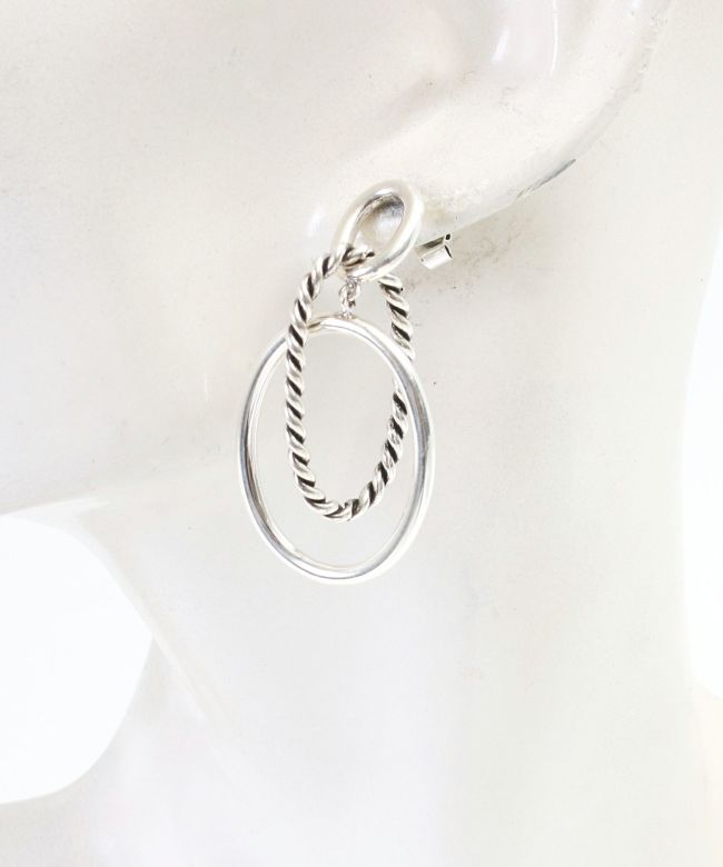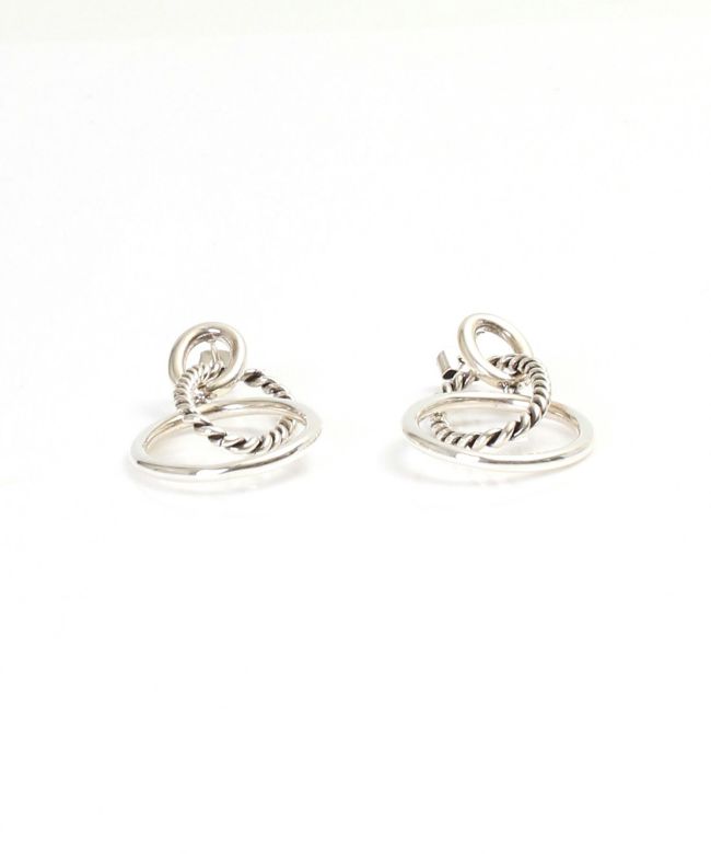 【デザイン】ツイストをあしらったピアスは、リングモチーフのコントラストが目を惹きます。程よいボリューム感がコーディネートのアクセント使いにぴったりです。