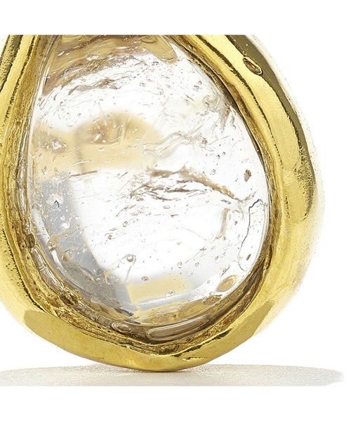 【デザイン】GOOSSENS Paris(ゴッサンスパリ)のピアス。フェミニンで繊細なカシュミール コレクションは、インディアン ジュエリーからインスピレーションを得ています。イエローゴールドに、しずくの形にカットされたロッククリスタルが美しいアイテム。自然光が当たるとその純度が明らかになり、きらめきを感じられます。