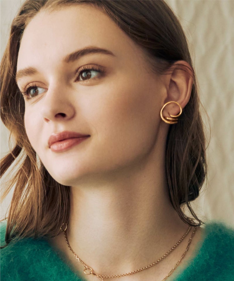 【デザイン】Charlotte Chesnais(シャルロットシェネ)のピアス。曲線、身体を流れるようなライン、または自然界からインスパイアされた有機的な形のコレクションです。滑らかで繊細かつ大胆なラインはCharlotte Chesnaisならでは。動きのあるフォルムと艶のあるゴールドトーンが顔周りを華やかに演出してくれます。こちらは2個セットのアイテムです。
