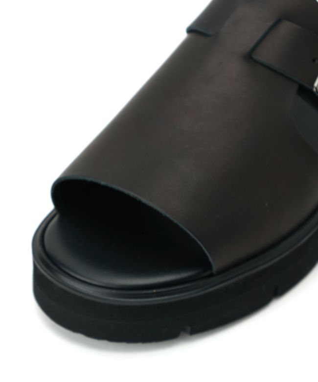 【デザイン】foot the coacher(フットザコーチャー)のボリュームソールが特徴のレザーサンダルです。 サンダルながら重厚感のあるデザイン性により足元からコーディネートを締めてくれる頼もしい一足です。ソールにはVibram社製のラバーソールを採用し、軽い履き心地を実現しており、ストレスなく履き続けて頂くことが可能です。