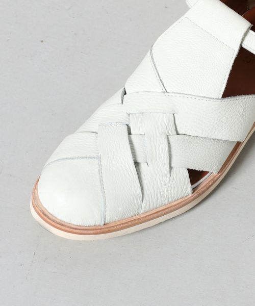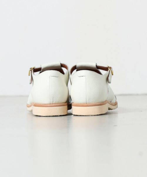 【デザイン】 レザーのシボ感が上品な雰囲気のグルカサンダル。ゴールドの金具がデザインアクセントとなり、全体の印象を締めてくれます。柔らかい革質で履き始めから足馴染の良い着用感。肌の露出が少ない為、通常の革靴感覚で着用が可能です。アウトソールはラバー素材となっており、しっかりとしたグリップ感。夏場に最適な大人顔の1足です。