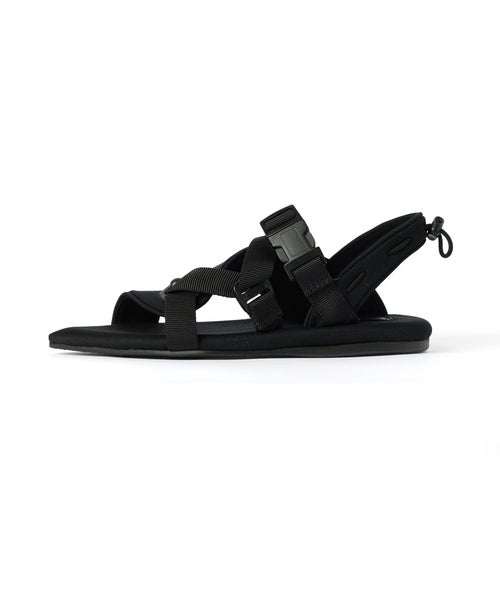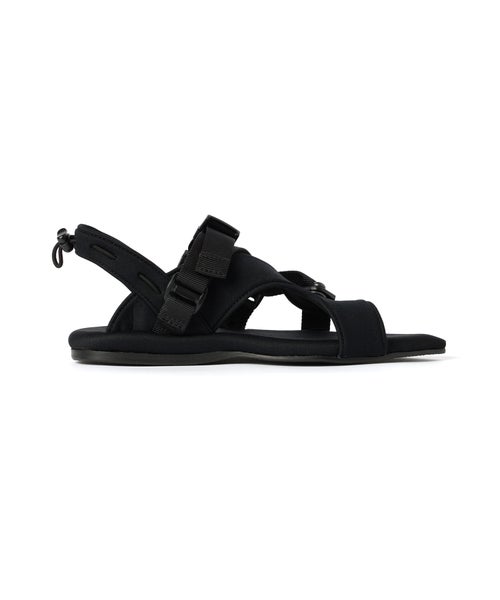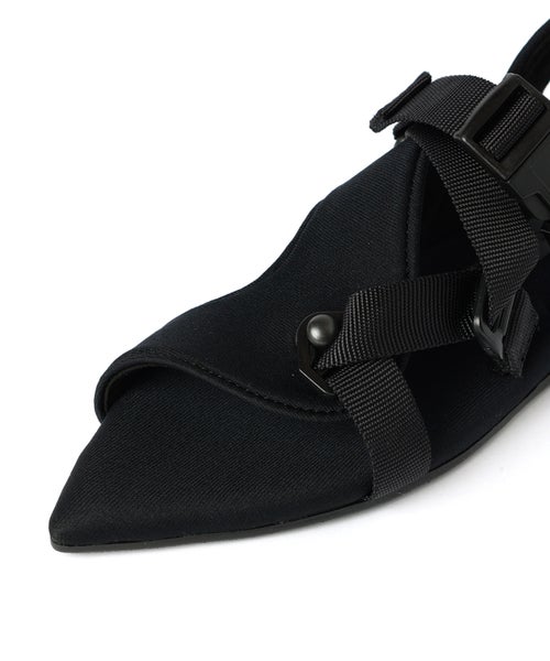 【デザイン】PIPPICHIC(ピッピシック)のサンダル。モードで大人の抜け感を演出する、計算されたベルテッドデザインが魅力の一足です。ミニマルなスタイリングにもエッジを効かせ、洗練された印象へとアップデート。シャープなポインテッドトゥとスポーティなナイロン素材の組み合わせが新鮮で、軽やかさと都会的な雰囲気を両立します。安定感のある履き心地でデイリーに取り入れやすく、カジュアルからきれいめまで幅広いスタイリングにマッチ。足元から今の気分を引き上げてくれる一足です。