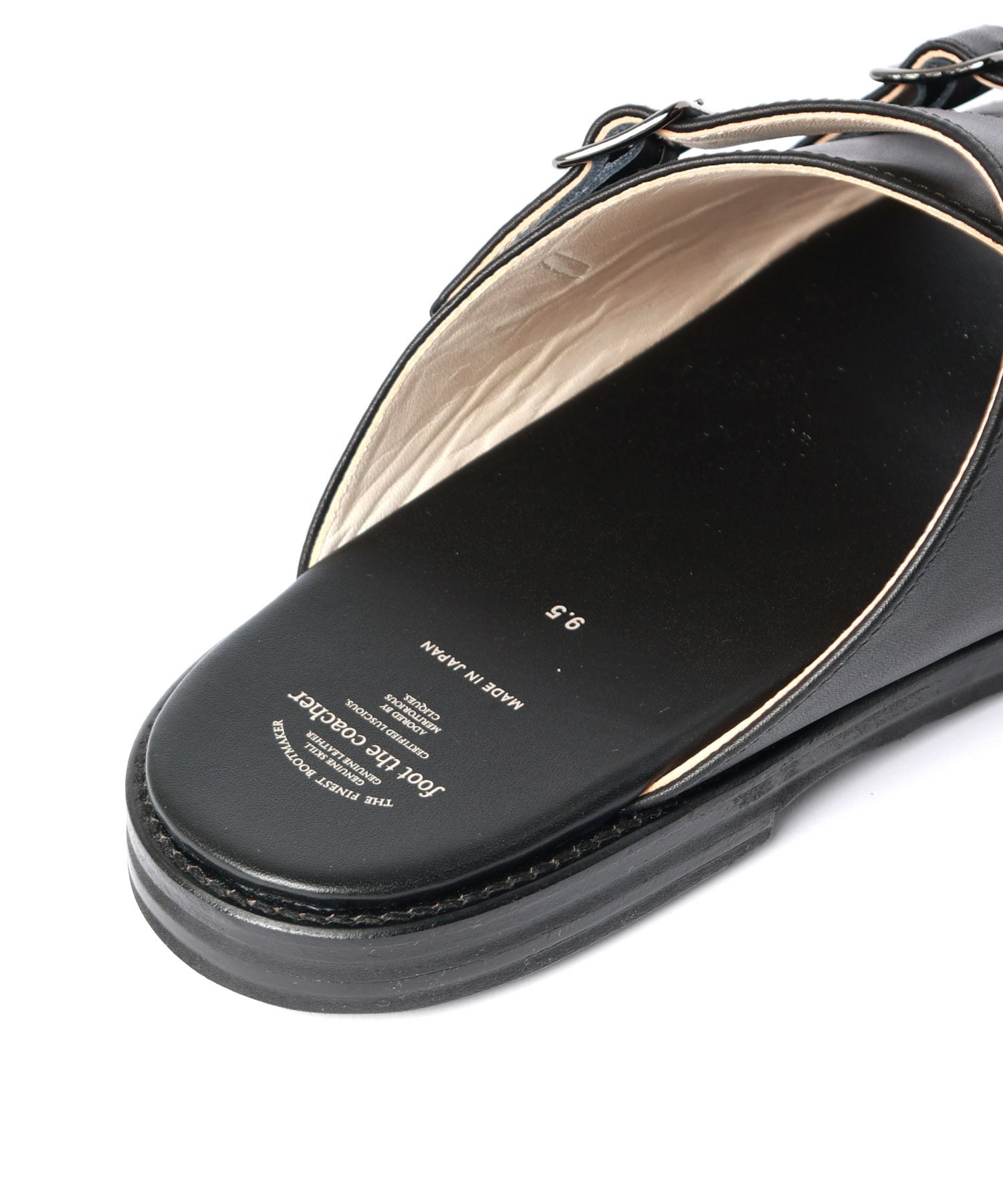【デザイン】 foot the coacher(フットザコーチャー)のサンダル。 足の形状に沿ったストレスの少ないオブリークラストを用いて制作したダブルベルトサンダルです。アッパーに程よくオイルを含んだきめの細かい北米産ステアハイドを採用し、上品さを演出。裏地には吸湿性抜群のホースレザーを使用し、機能性抜群なアイテムです。アッパーには北米産ステアハイドを採用。ライニングには吸湿性に優れたホースレザーを採用しています。ソールにはビブラム社のソールが使用されており、ストレスなく着用して頂けます。