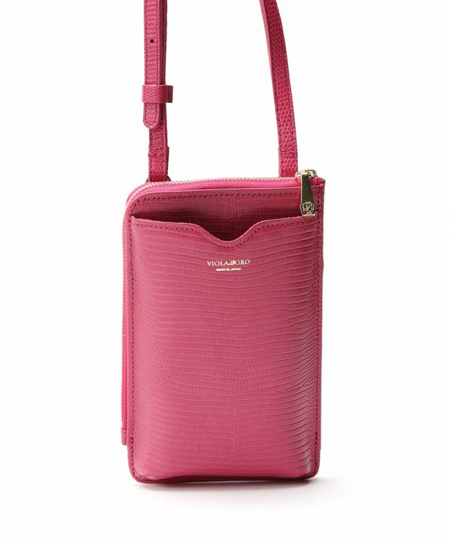 【VIOLAd'ORO(ヴィオラドーロ)】 リザード型押しレザー スマートフォンポシェット