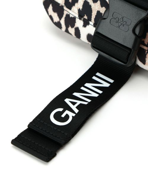 【デザイン】 GANNI(ガニー)のミニショルダーバッグ。バックル部分にはGANNI(ガニー)のブランドマークが入施されたアイコニックなアイテム。ナイロン素材でアクティブなシーンにもご活躍頂けるバックです。ショルダーストラップ付で、クロスボディにも対応可能。コンパクトながら必要最低限のものはしっかり収納してくれるので、普段使いにもピッタリのバックです。印象的なレオパード柄は、スタイリングのアクセントにもなってくれます。