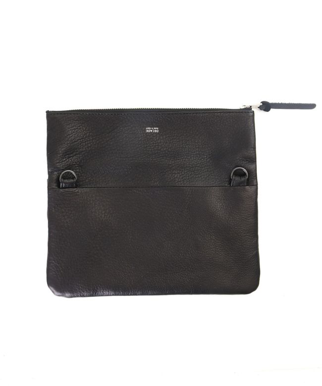 【デザイン】 DECADE(ディケイド)のバッグ。軽いお出かけに丁度いいサイズのショルダーバッグ。メイン素材には厚手でしっとりと馴染みの良い柔らかな風合いのオイルドレザーを使用。 使い始めからくったりと体に馴染みヘビーローテ間違いなし。 裏地にはカモ柄のナイロン生地を使用し、トレンド感を演出。 財布、スマホ、カギ、など必要最低限の荷物をこのバッグにまとめるのが◎。斜め掛け用のショルダーベルトは取り外し可能。 取り外して、ポーチやクラッチバッグとして使用も可能。 ユニセックスで使えるアイテムです。
