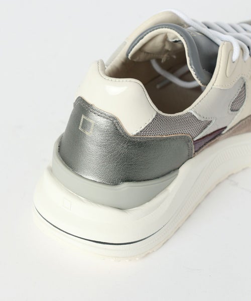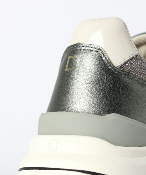 【デザイン】D.A.T.E.(デイト)のスニーカー。ブランドアイコンモデルFG(エフジー)です。 グレーをベースにした落ち着きのある配色に、 メタリックパーツがアクセントのFGスニーカー。 スエードとメッシュを組み合わせた異素材デザインで立体感を表現しています。 ヒールに施されたメタリックパネルが都会的な印象をプラス。 2.5cmのジェルインソールと約5cmの軽量アウトソールで快適な 履き心地とスタイルアップを実現。通気性の高いアッパーで長時間の着用も快適に。 シンプルで洗練されたカラーは幅広いコーディネートにマッチします タウンユースから大人カジュアルまで活躍する万能デザインのスニーカーです。