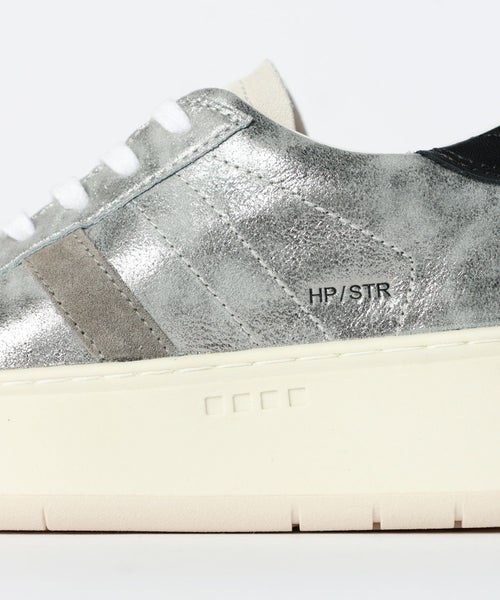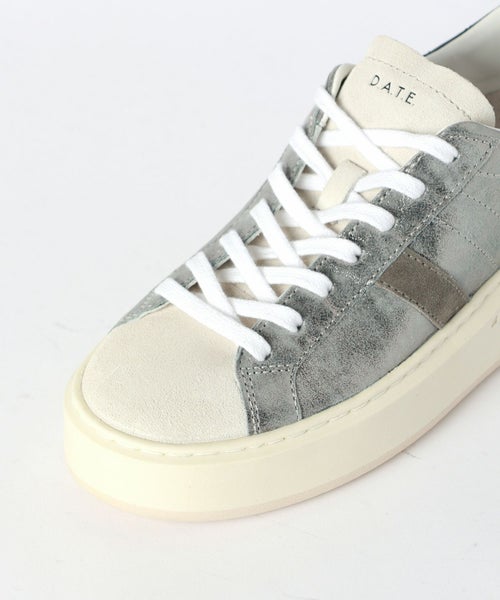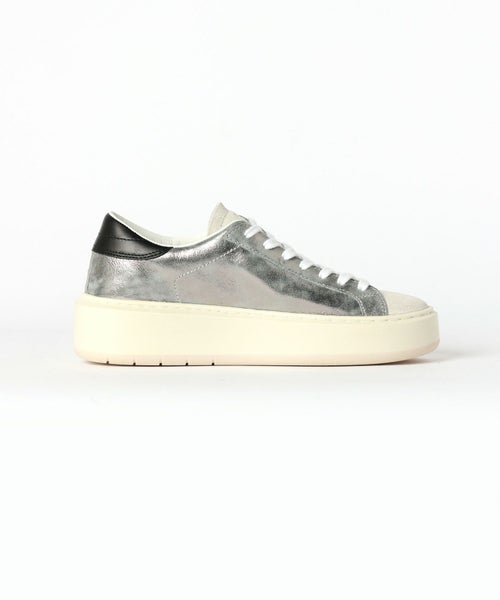 【デザイン】D.A.T.E.(デイト)のスニーカー。ユニークなメタリック調レザーが印象的な厚底スニーカーです。 ブラックのヒールパッチとコントラストの効いたデザインが存在感を強調。 スエードトゥとサイドの異素材コンビネーションがスタイリッシュな印象のアイテム。 4cmの高さの縫い目があるゴム製プラットフォームソールを採用しています。 クッション性に優れた厚底ソールで快適な履き心地を実現。 エッジの効いたカラーリングでコーディネートのアクセントに。 カジュアルからモードスタイルまで幅広く対応する万能なスニーカーです。