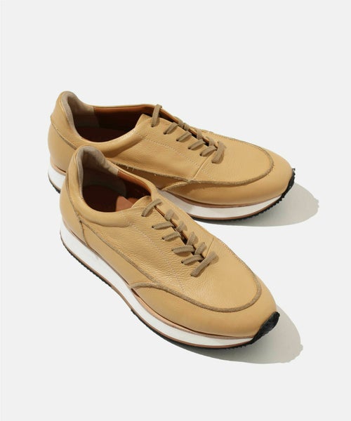 【デザイン】SHOE MAKERが作る大人のスニーカーをコンセプトに誕生したSKシリーズを大人が履きやすい絶妙なベージュカラーで別注。革靴のような印象を併せ持つスニーカーとなっており、きれいめなコーディネートの足元に最適です。