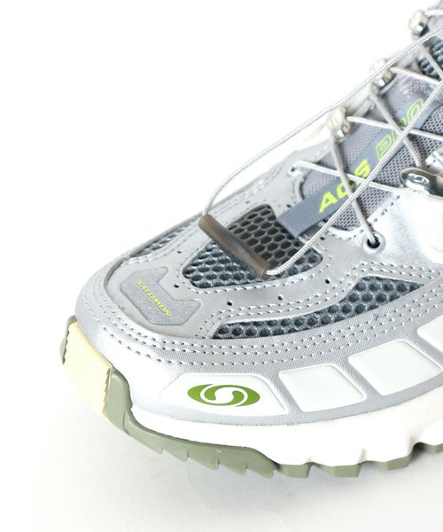 【デザイン】 「MM6 Maison Margiela(エムエムシックス メゾン マルジェラ)」と「Salomon(サロモン)」のスニーカー。こベースとなるモデルはSalomonの定番モデルACS PRO。トレイルの歴史に根ざした定番を機能的に進化させた典型的なテクニカルフットウェアのモデルです。優れた構造と通気性、アーカイブの伝統を忠実に再現したデザインとなっております。インラインでも人気のモデルを、MM6仕様のオリジナルカラーに。随所にシルバーカラーと蛍光グリーンカラーを使用し、アイコニックな一足に仕上がっています。