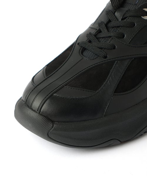 【デザイン】OAO(オーエーオー)のスニーカー。先進的で流れるような曲線美を空間に描く建築家の思想から着想を得た「THE CURVE」シリーズの一足。曲線的なラバーパーツとオリジナルソールが印象的で、足元にモダンかつ力強い存在感を与えます。幾重にも重なる有機的なラインが立体的な奥行きを生み出し、シンプルながらも視線を引きつけるデザインに。アッパーにはTPUパーツを取り入れ、フォルムの美しさを保ちながら足を包み込むような構造に仕上げています。トゥからヒールにかけて緩やかな傾斜をつけることで、動きに寄り添う滑らかなシルエットを形成。機能性とデザイン性を高次元で融合させた、都会的で洗練された一足です。