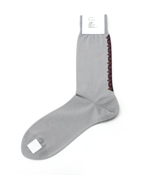 【デザイン】omo design(オーエムオー デザイン)の靴下。ソックスをアクセサリーとして楽しむをコンセプトに MADE IN JAPAN にこだわりクラフトマンシップでひとつひとつ丁寧に編み上げたアイテム。コットン×ナイロンの混紡地で、薄手でさらっとした生地はフィット感をもたらし、履き心地抜群です。