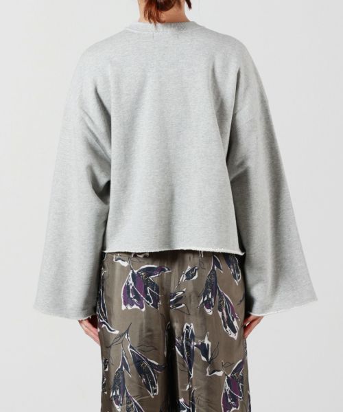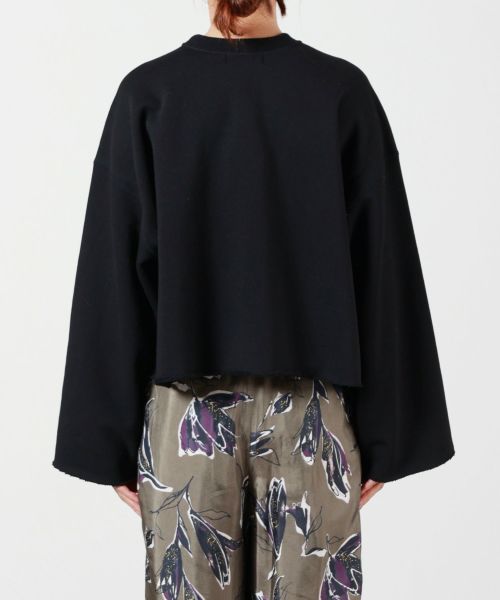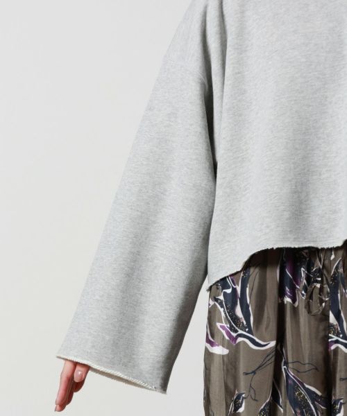 【デザイン】SACRA(サクラ)のカットソー。ゆるやかなドロップショルダーに、あえて長めに取った袖が特徴の一着。手首でくしゅっとたゆませたり、折り返して抜け感を出したりと、着こなしに変化をつけられます。クロップド丈がボトムスとのバランスを取りやすく、ハイウエストのパンツやスカートと好相性。シンプルながらも、シルエットとディテールで差がつく一枚です。