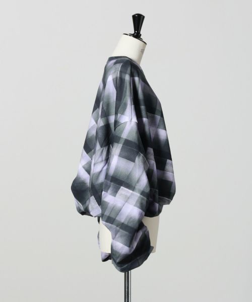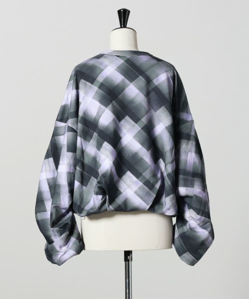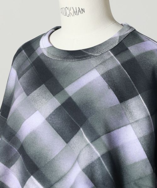 【デザイン】DRIES VAN NOTEN(ドリス ヴァン ノッテン)のスウェット。オーバーサイズシルエットで仕立てられたスウェットシャツは、テーラードカットによる洗練されたラインと、ドレープ加工の立体的な表情が魅力の一枚です。スプレーペイント風のチェックプリントがアートピースのような存在感を放ち、カジュアルなアイテムでありながらモードな雰囲気を演出。プリーツギャザーを施した袖が動きにニュアンスを与え、シンプルなスタイリングも一気に格上げしてくれます。クルーネック仕様で着回しやすく、デイリーから特別なシーンまで幅広く活躍します。