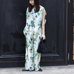 おすすめポイント:普段スウェットを着慣れない私でもナチュラルに着こなせました。クロップド丈なのでツヤ感あるブラウスをレイヤードしてよりクリーンな印象に★レイヤードアイテムによって様々な雰囲気にスタイリングできそう!毎年大人気の柄パンはグリーンベースで爽やかさを演出できます♡