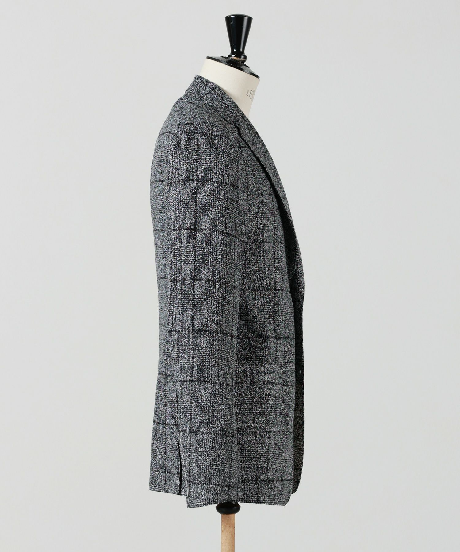 おすすめポイント:モノトーンの糸で構成されているグレンチェックは都会的な印象を与えてくれます。 ビジネスカジュアル、オフの日の羽織り両方に活躍する汎用性の高い一着です。