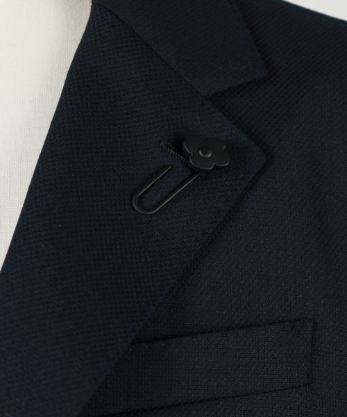 【素材】 微光沢感のあるポリエステル×ウールの素材を使用。ホップサック編みのクラシックな素材感で、様々なスタイリングにすっと馴染む汎用性の高さが魅力的です。袖裏にはレーヨン×キュプラの素材を使用。袖通しも快適に着用いただけます。