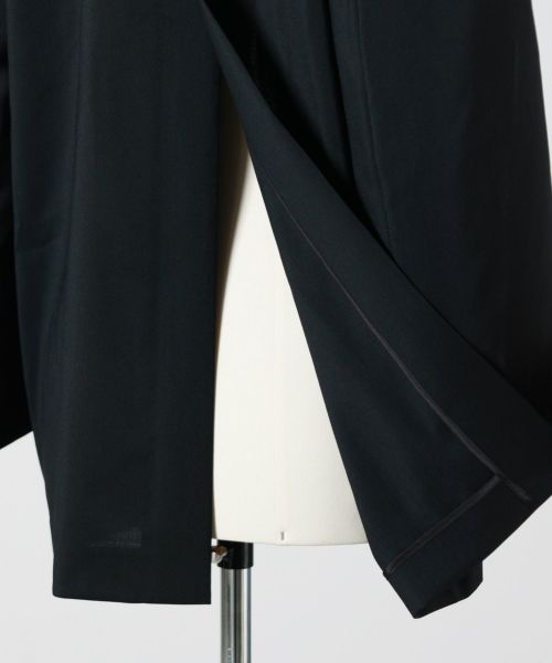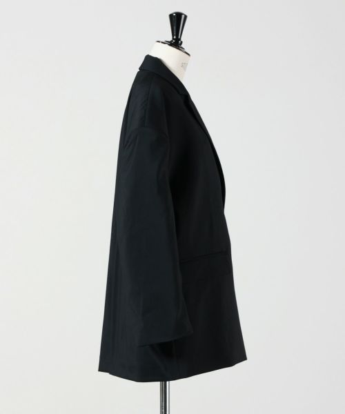 【デザイン】ENFOLD(エンフォルド)のジャケット。肩パッドが入っており、肩から大きく外れたオーバーシルエットが特徴的なモードデザイン。夏場でも冷房で肌寒い室内や、少し冷えこむ夜など温度調整にも使えます。同素材のCENTER-PRESS BERMUDA-PANTS(300IA131-0131)とのセットアップスタイルや、ドレスに合わせたり、スポーティーなインナーを中に着るスタイルもオススメです。