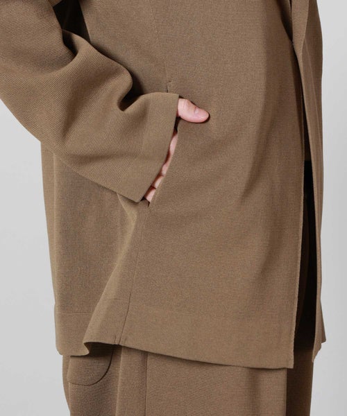 【デザイン】CFCL(シーエフシーエル)のジャケット。ラペルやフロントデザインはミニマルに仕上げられており、ニット素材でありながらきちんと感を兼ね備えています。カーディガンのように気軽に羽織れる軽快さがありつつ、スタイリング全体を引き締めてくれるアイテムに仕上がっています。クリーンな着こなしはもちろん、デニムやカットソーと合わせてカジュアルダウンした着こなしもおすすめです。
