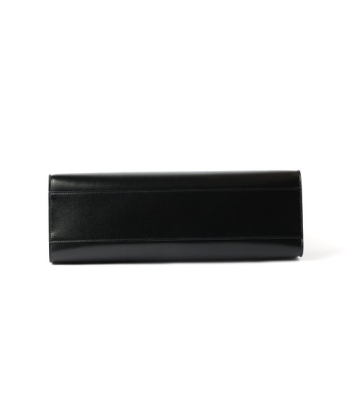 【素材】 上質なカーフレザーを贅沢に使用し、しっとりとした柔らかな手触りと、自然な艶感が特徴です。手にした際のなめらかな質感と程よいハリ感が、美しいフォルムを保ちながら高級感を引き立てます。内側にはナッパレザーのライニングを施し、よりソフトで上品な印象に仕上げています。使い込むほどにレザーの風合いが深まり、経年変化も楽しめる一方で、傷や水分にはややデリケートなため、取り扱いには注意が必要です。イタリア製ならではの丁寧な仕立ても魅力のひとつです。