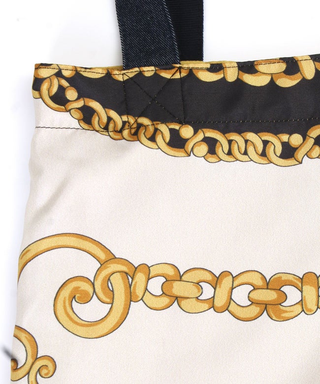 MUVEILがJAPAN DENIMのためだけにオリジナルで起こしたスカーフ柄のプリントを使用したシリーズ。染色にこだわった8.5オンスデニムを使用。天然藍特有の青みを生かし加工を入れることで、ヴィンテージのような風合いに。肩掛けも可能な長めの持ち手で、使い勝手も◎。