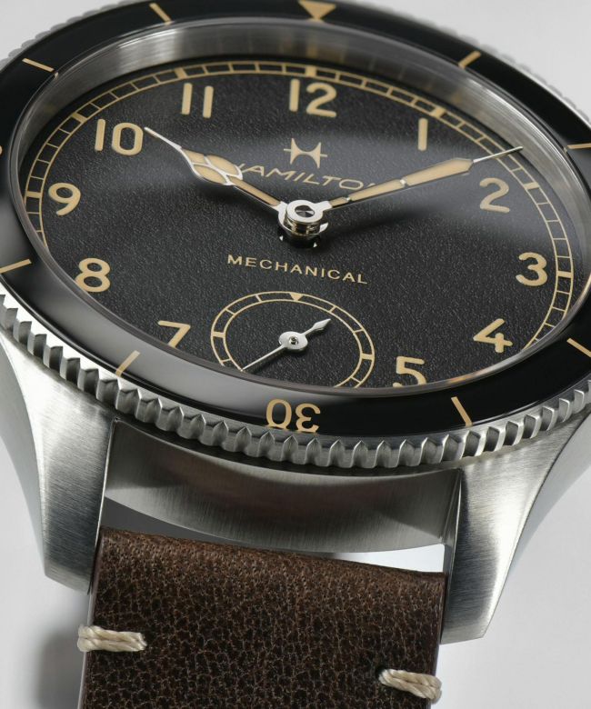 【デザイン】 第二次世界大戦中アメリカ軍に使用されていた、当時最先端のポケットウォッチ「モデル23」からインスピレーションを得た「カーキ アビエーション パイロット パイオニア」。その独特なデザインは、ハミルトンのアビエーションとミリタリーの歴史へのトリビュートです。スポーティで洗練されたこのパイロットウォッチは、機械式手巻きムーブメント、両方向回転ベゼル、玉ねぎ型の大きなリューズといったクラシカルなディテールがヘリテージを色濃く反映しています。43mmサイズのケースには、艶やかなステンレススチールケースと、経年変化によって個性を生み出すブロンズケースをライナップしています。