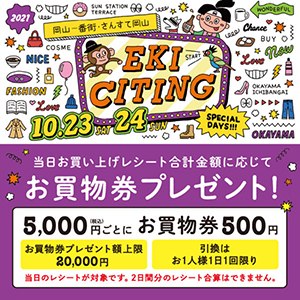 【PARIGOT岡山店】 10/23(土)・10/24(日)「EKI CITING お買物券プレゼント!」開催