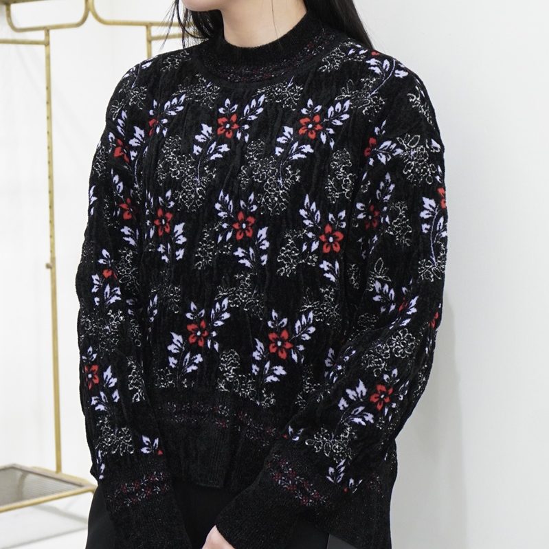 【8/13(水)20時発売開始】Mame Kurogouchi(マメ クロゴウチ)×PARIGOT別注カラーが登場!「FLORAL JACQUARD HIGH NECK KNITTED TOP (NAVYxNAVY)」