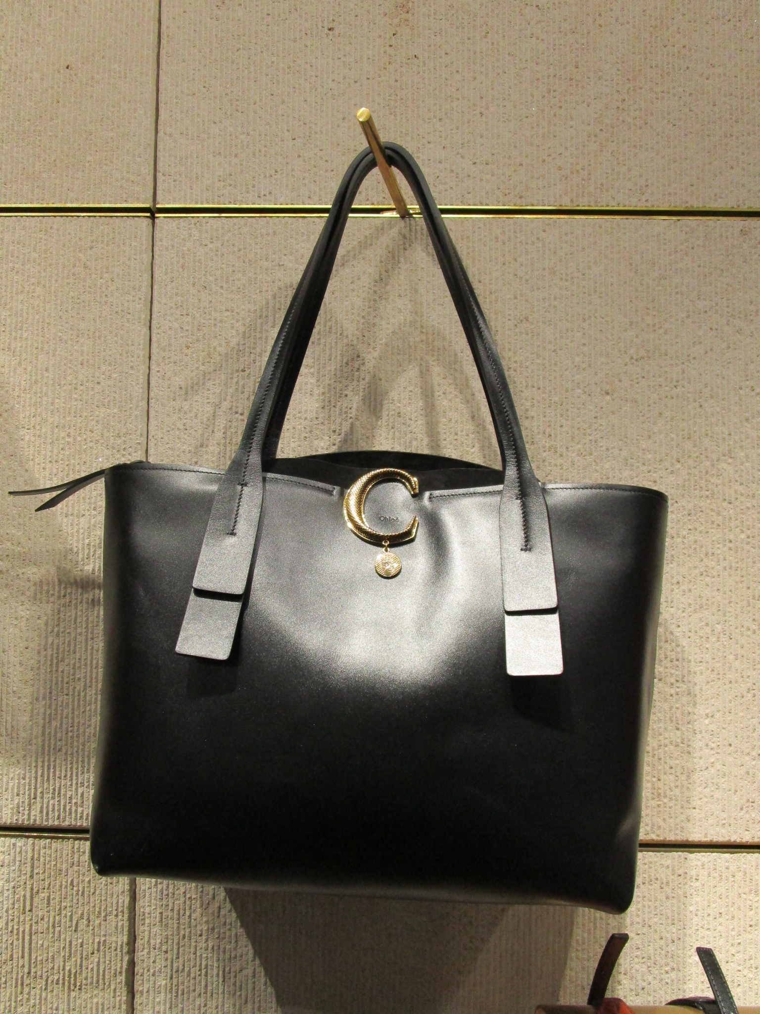 収納力抜群のトート型は肩掛けも出来、フロントのアイコン、「C」ロゴが効いてます。