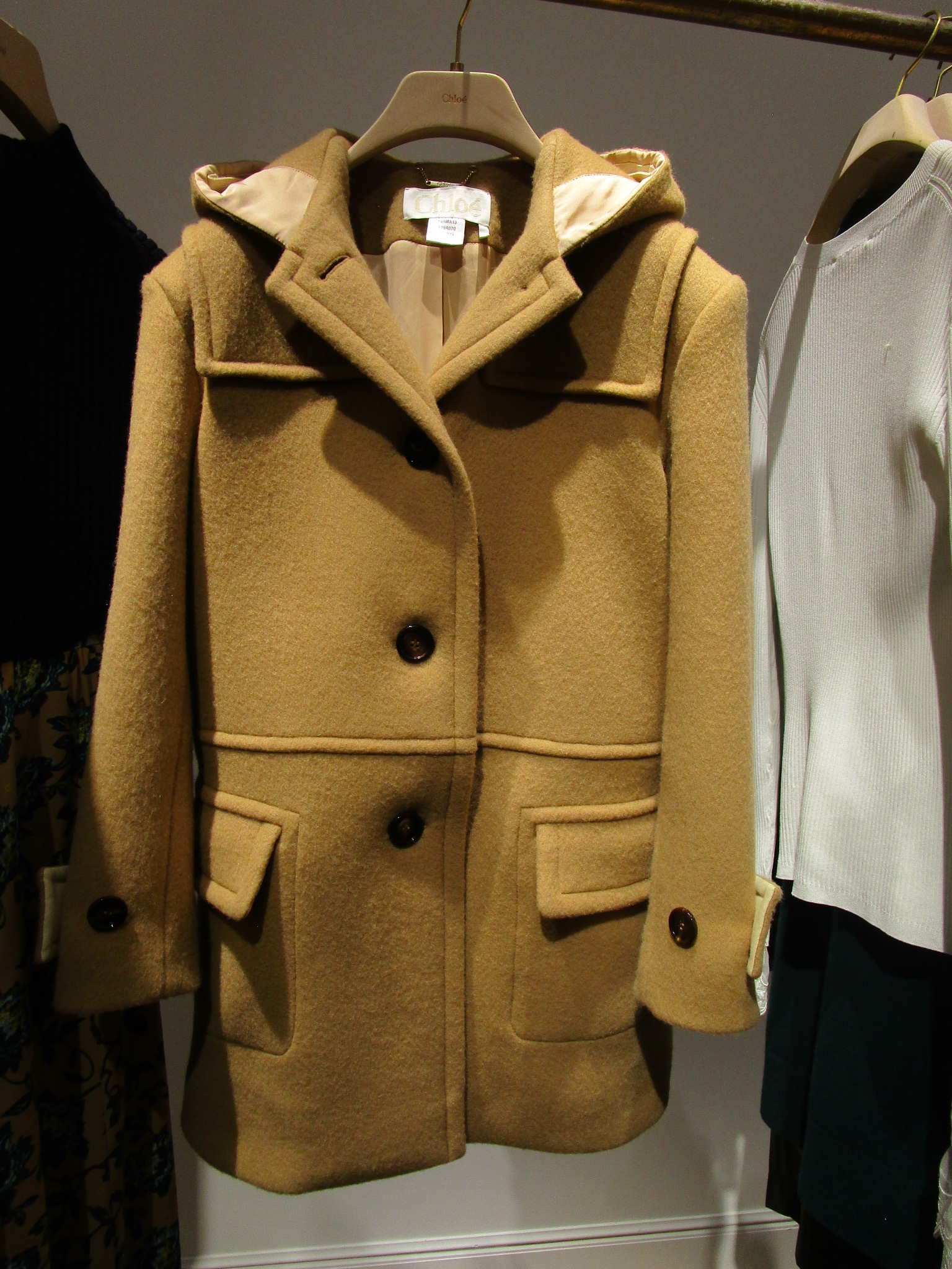 人気のコートは上質なウールを使用したフーデットコート。